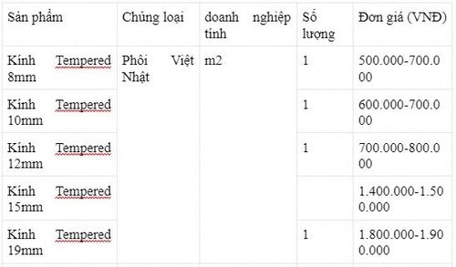 chi phí là một trong những nhân tố được nhiều người lưu ý khi có nhu cầu thi công, lắp đặt vách kính cho văn phòng. Chính thành thử trong phần bài viết này, chúng tôi sẽ thông tin bảng giá chi tiết để các bạn tham khảo: